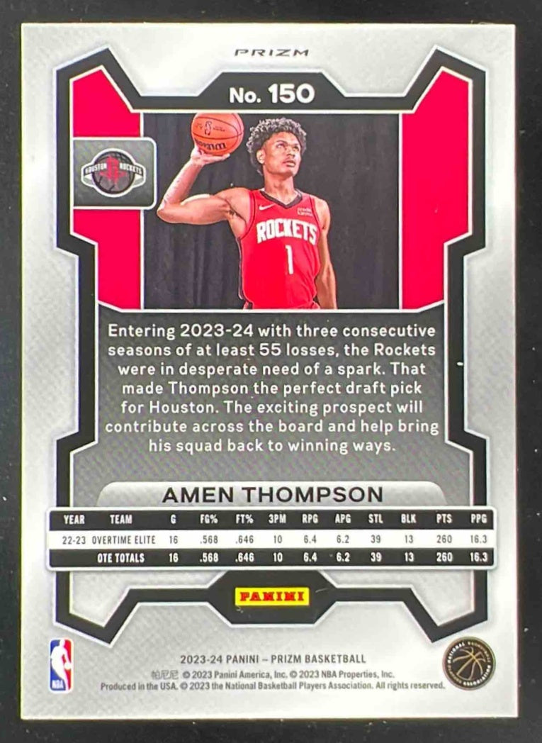 2023-24 Panini Prizm Prizms Hyper #150 Amen Thompson RC