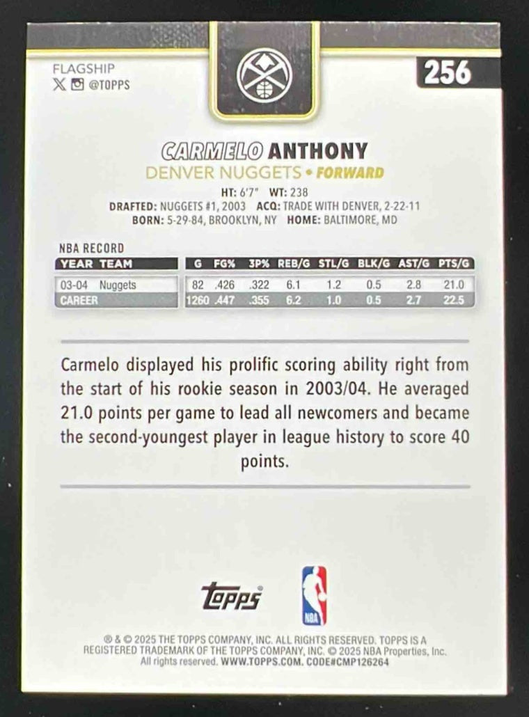 2025-26 Topps Cart Load #256 Carmelo Anthony /25