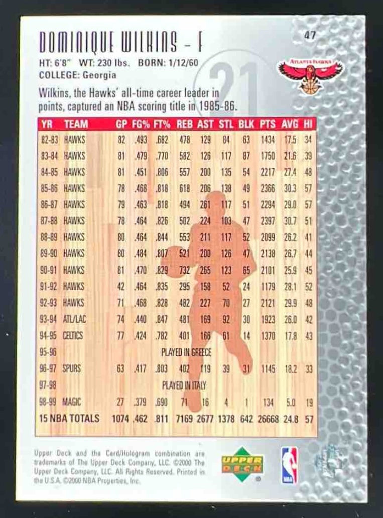 1999-00 Upper Deck Legends Commemorative Collection #47 Dominique Wilkins /50