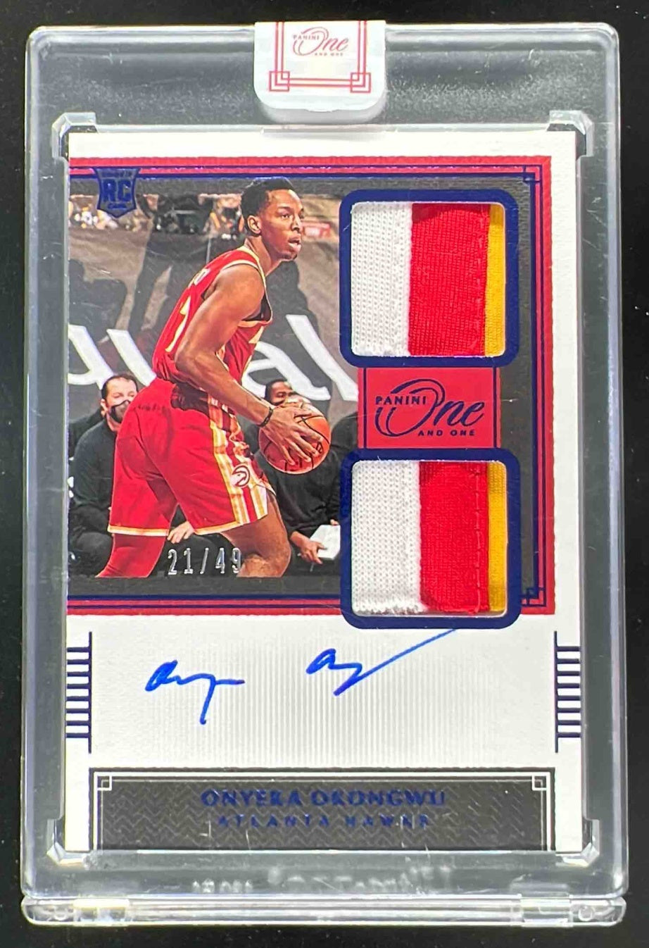 2020 Panini One and One Rookie Dual Jersey Auto Blue Onyeka Okongwu RC Auto /49