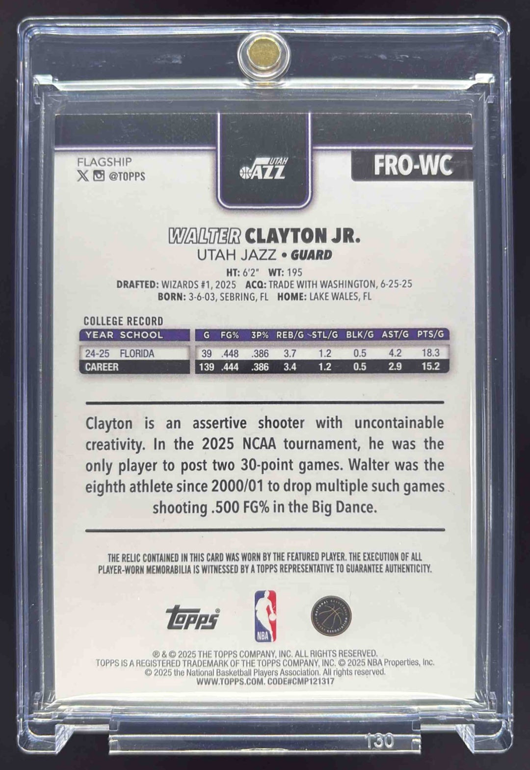 2025-26 Topps Real One Relic FoilFractor #FRO-WC Walter Clayton Jr. RC /1