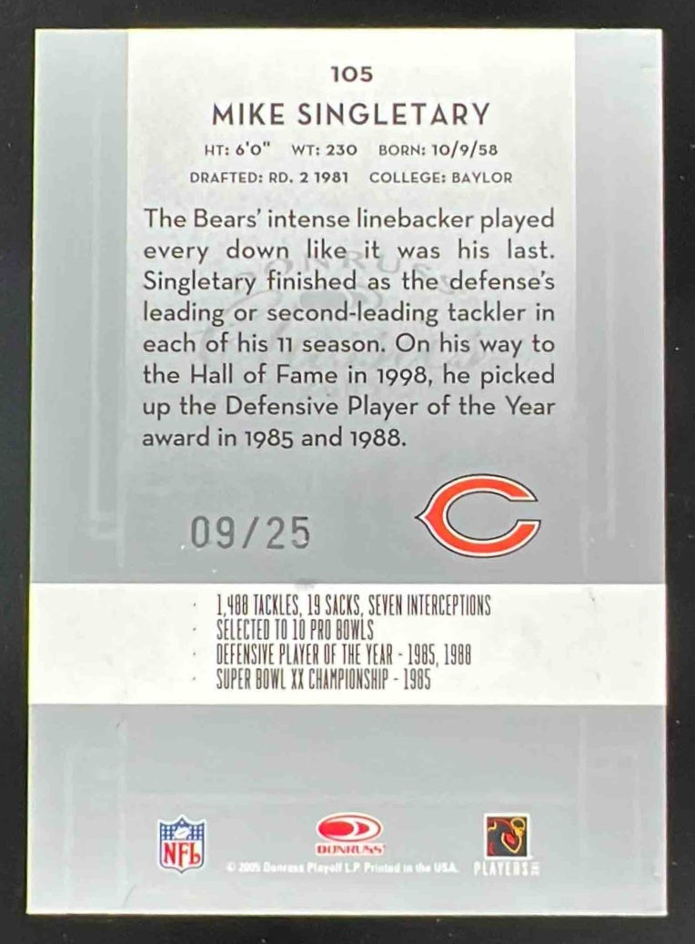 2005 Donruss Classics Significant Signature Silver #105 Mike Singletary Auto /25