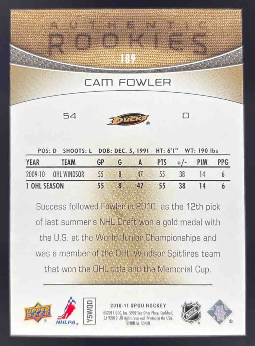 2010-11 SP Game Used Gold #189 Cam Fowler RC /50