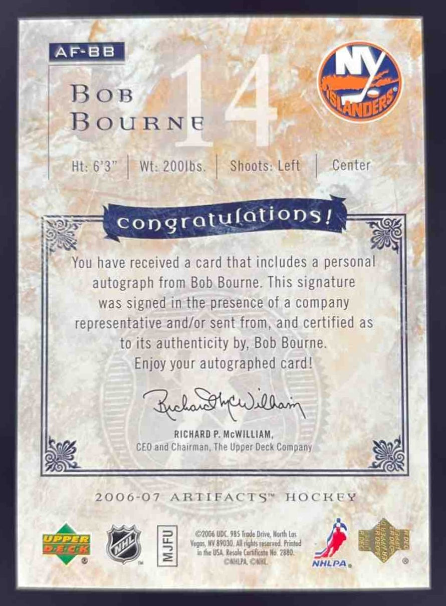 2006-07 Upper Deck Artifacts Auto Facts #AF-BB Bob Bourne Autograph Auto