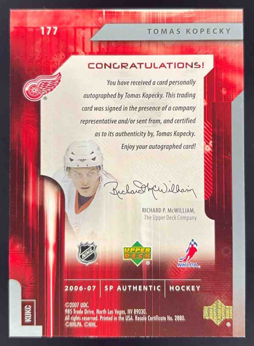2006-07 SP Authentic #177 Tomas Kopecky Autograph RC Future Watch Auto /999