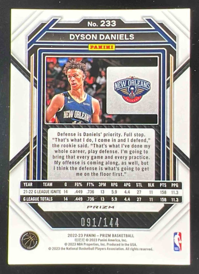 2022-23 Panini Prizm Prizms Blue Sparkle #233 Dyson Daniels RC /144