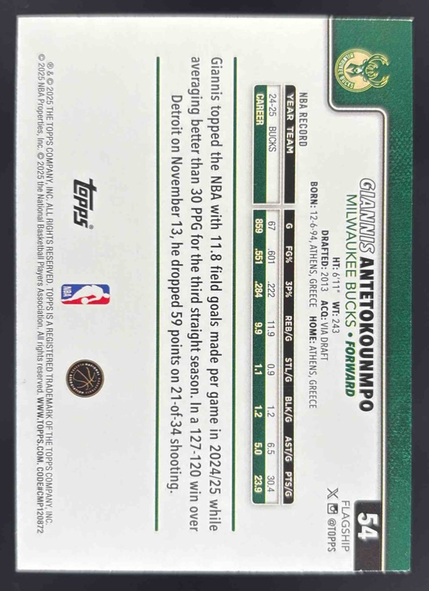 2025-26 Topps Purple Holo Foil #54 Giannis Antetokounmpo /250