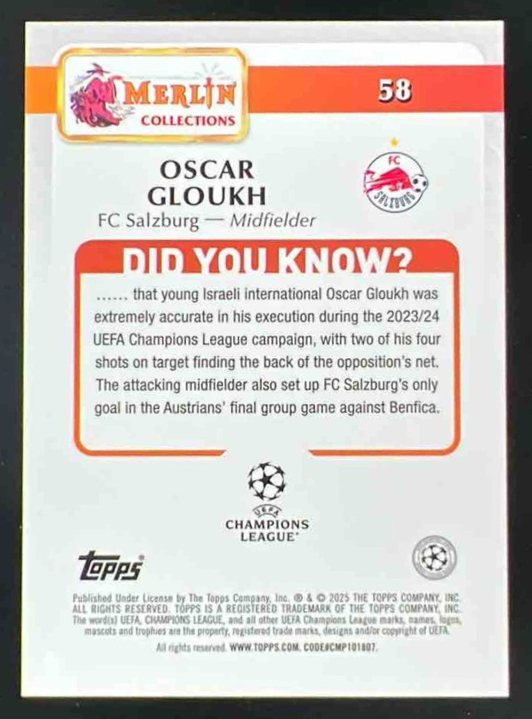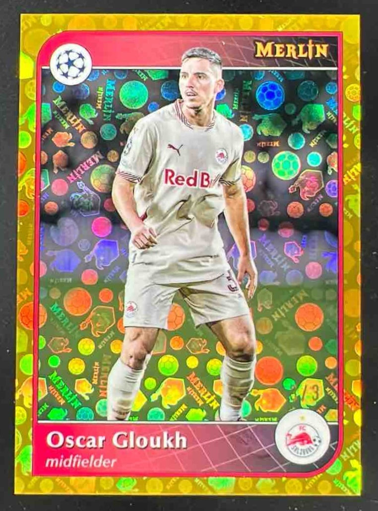 2024 Topps Merlin Chrome UEFA Gold Vintage Merlin Refractor #58 Oscar Gloukh /3
