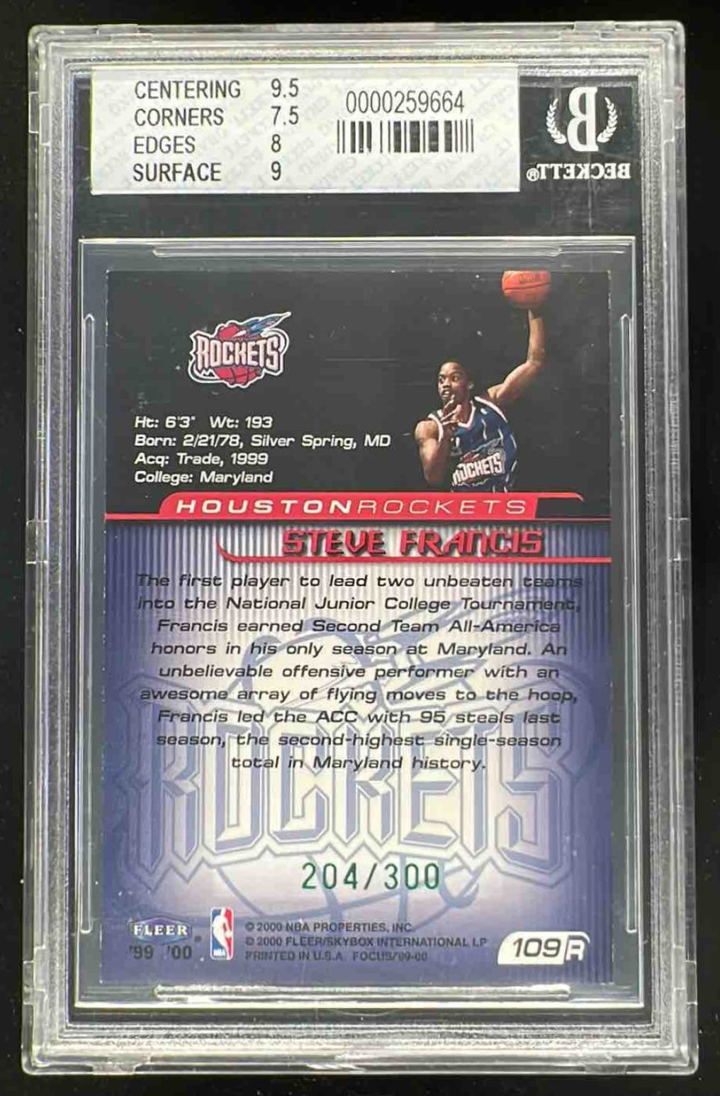 1999-00 Fleer Focus Masterpiece Mania #109 Steve Francis /300 BGS 8