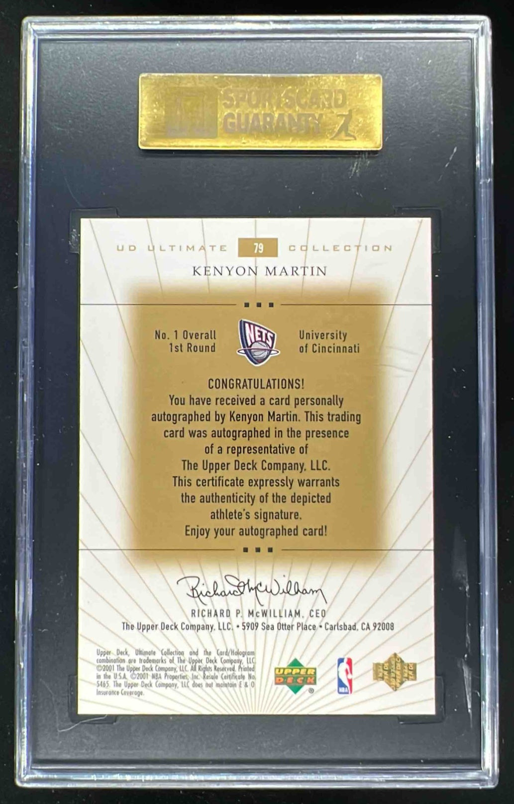 2000 Ultimate Collection #79 Kenyon Martin RC Auto /250 SGC 9