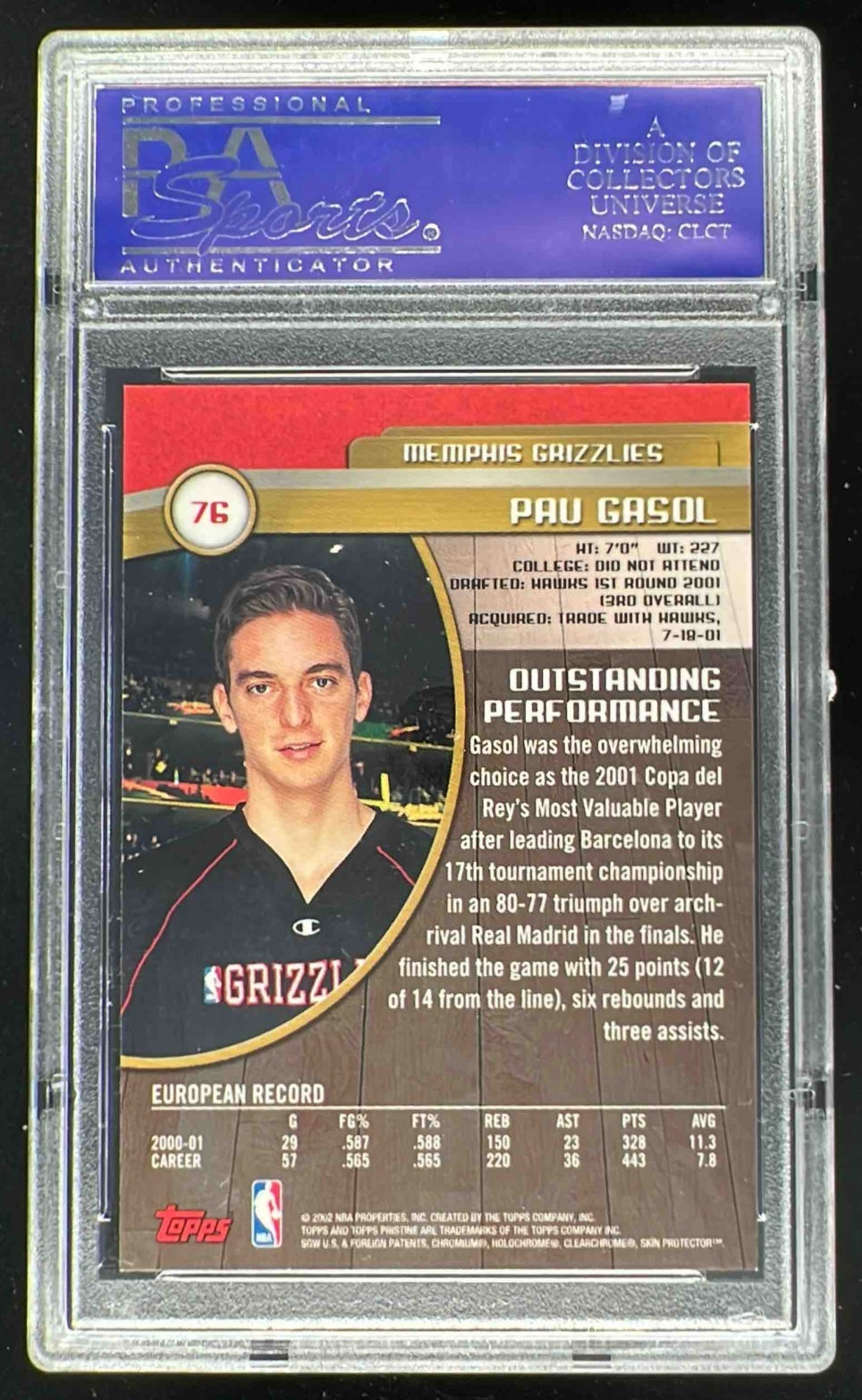 2001-02 Topps Pristine #76 Pau Gasol RC PSA 10