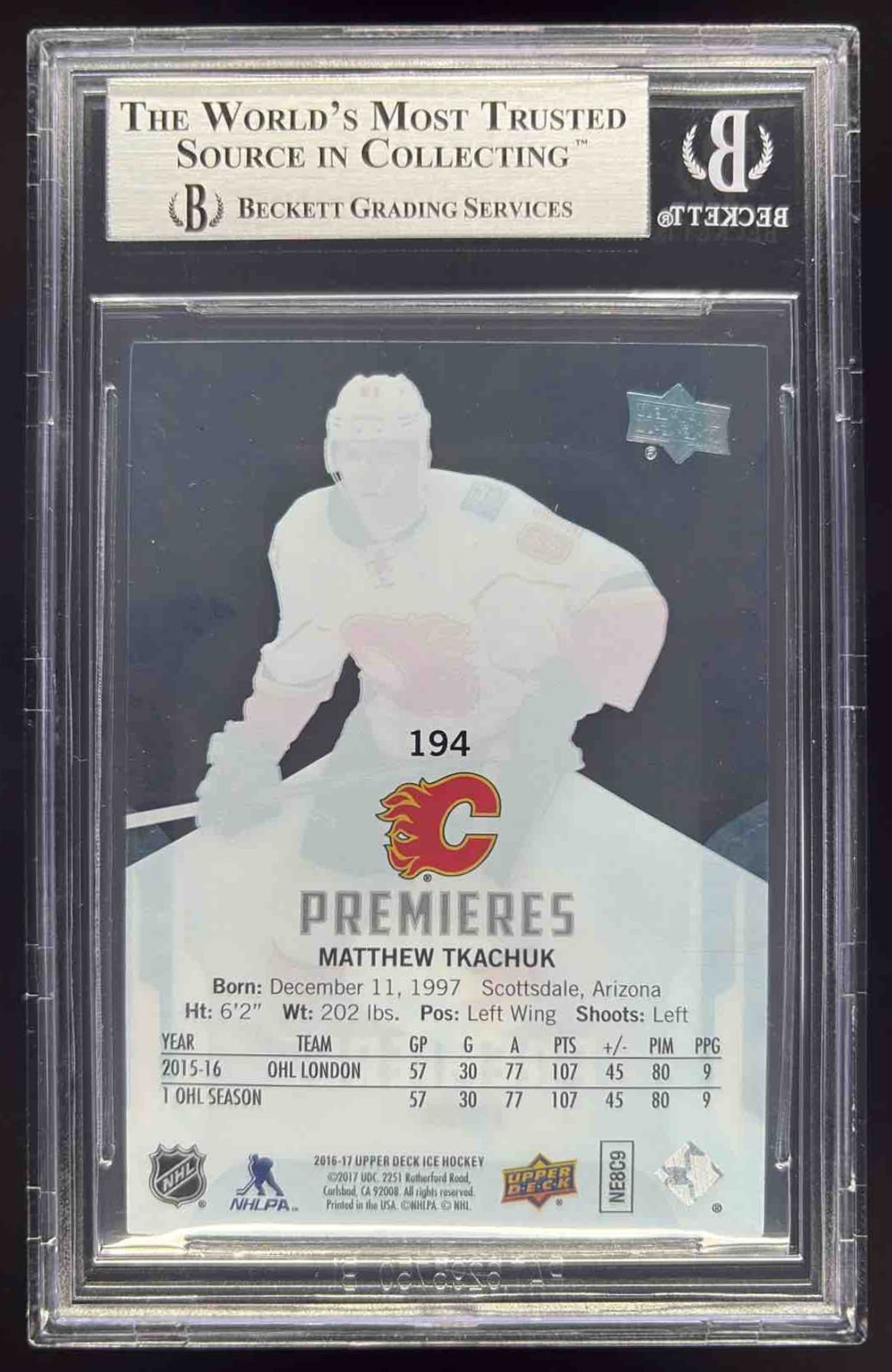 2016-17 Upper Deck Ice #194 Matthew Tkachuk RC /99 BGS 9