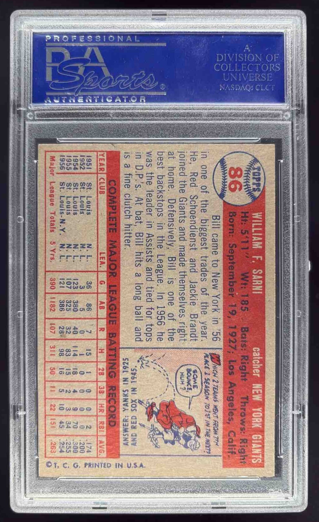 1957 Topps #86 Bill Sarni PSA 7
