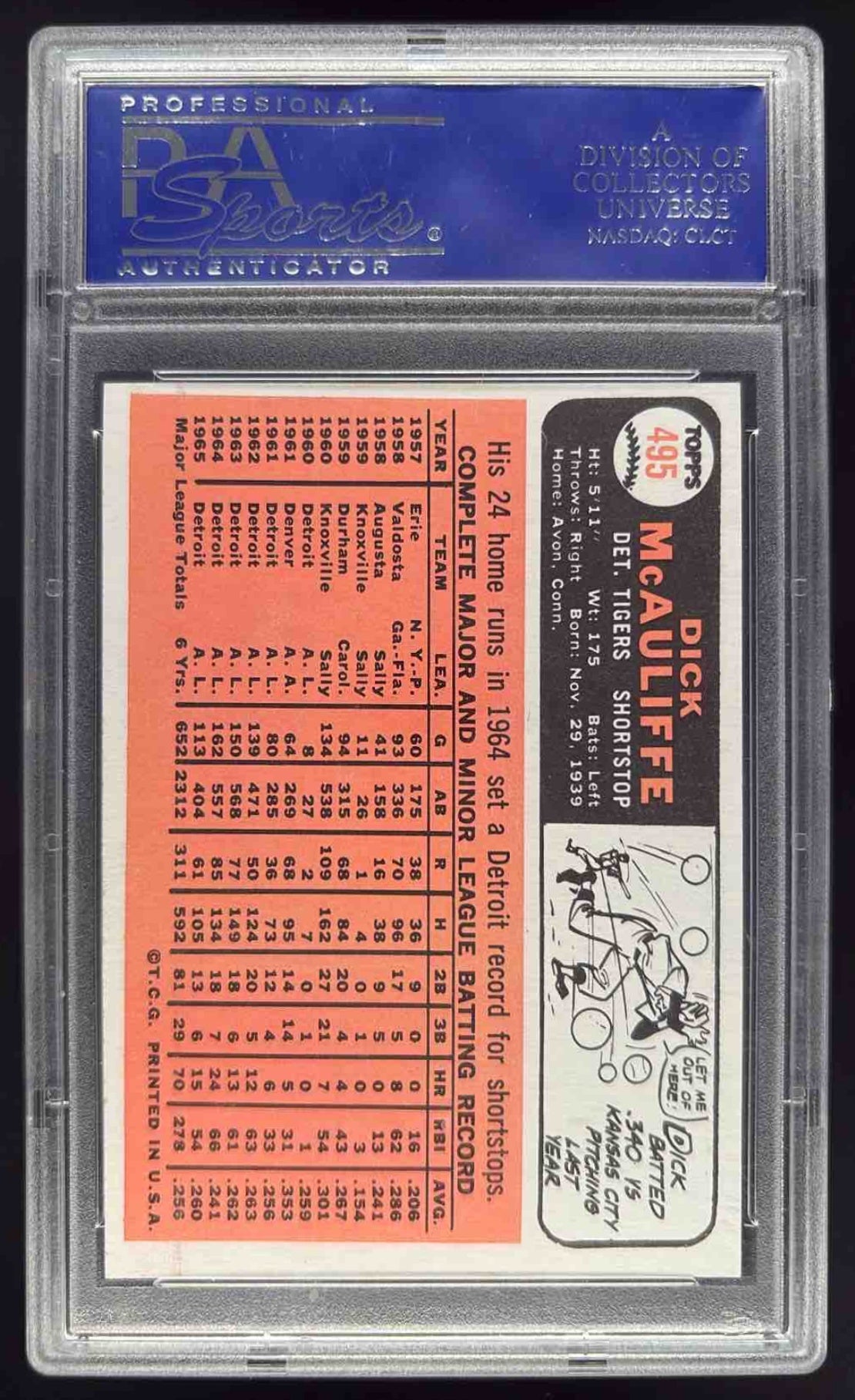 1966 Topps #495 Dick McAuliffe PSA 7
