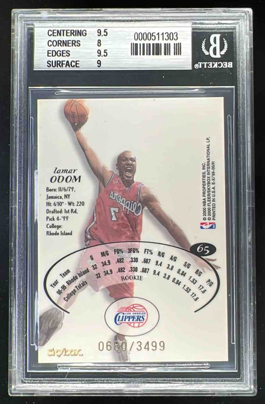 1999-200 Skybox E-X #65 Lamar Odom RC /3499 BGS 8.5