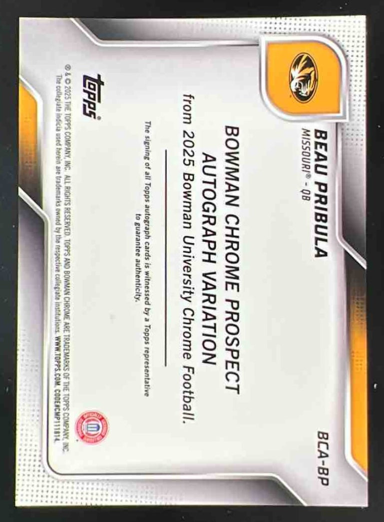 2025 Bowman Chrome University Prospect Autograph #BCA-BP Beau Pribula Auto
