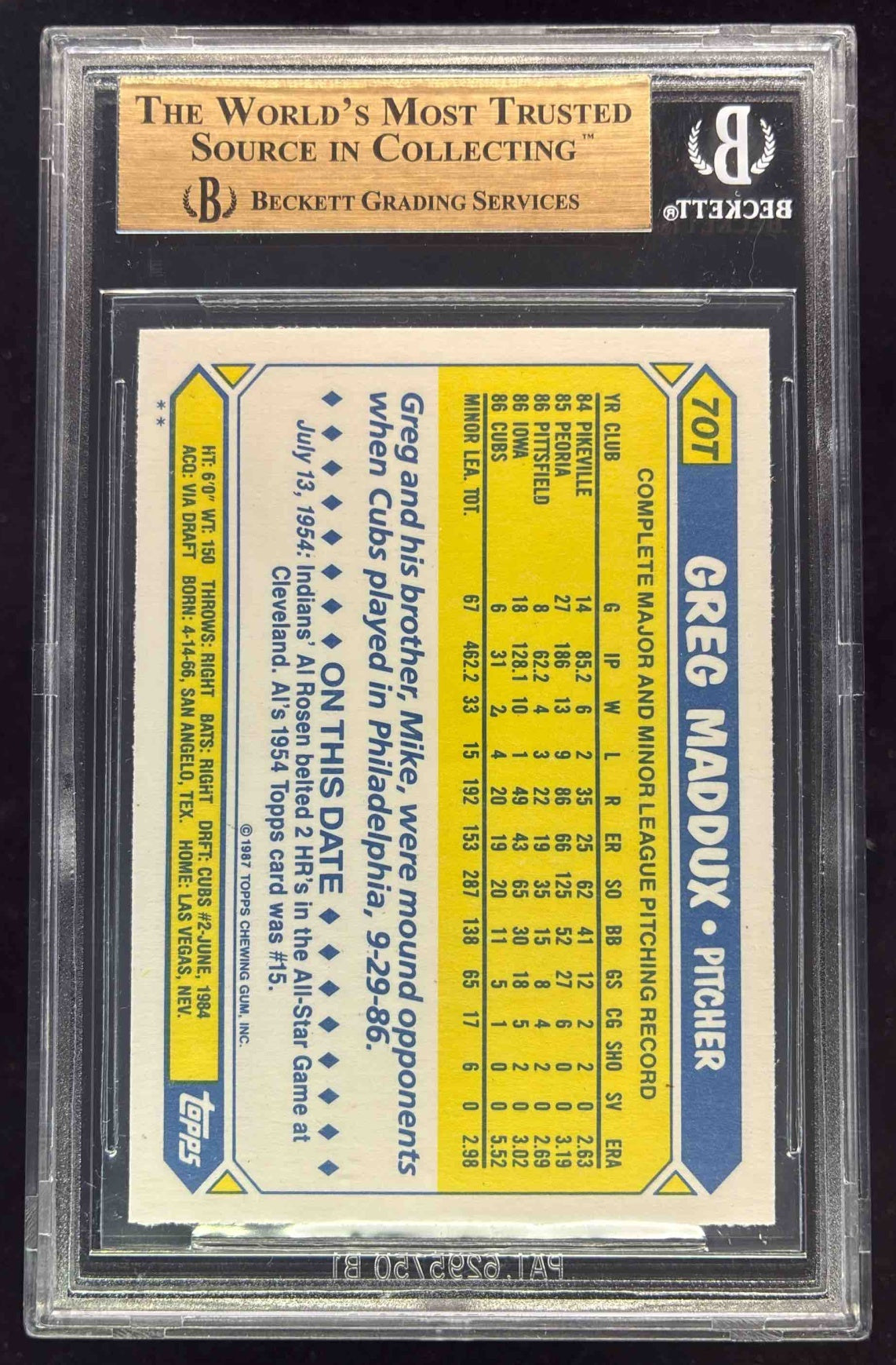 1987 Topps Traded #70T Greg Maddux RC BGS 9.5
