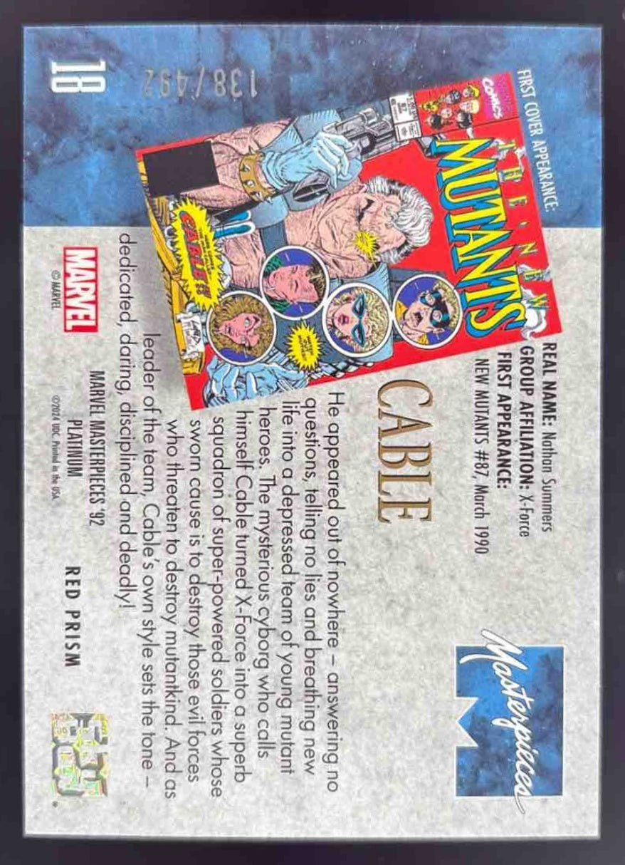 2024 Upper Deck Marvel Masterpieces '92 Platinum Red Prism #18 Cable /492