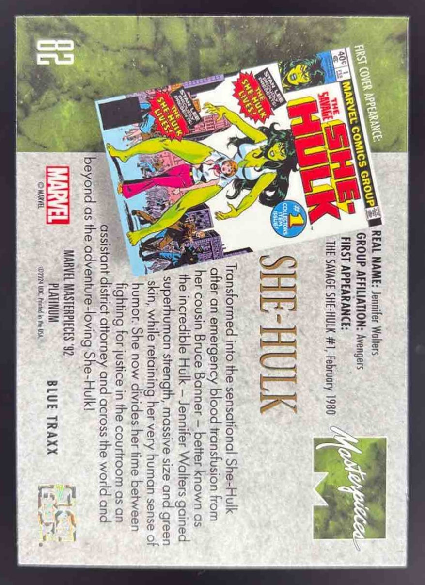 2024 Upper Deck Marvel Masterpieces '92 Platinum Blue Traxx #82 She-Hulk