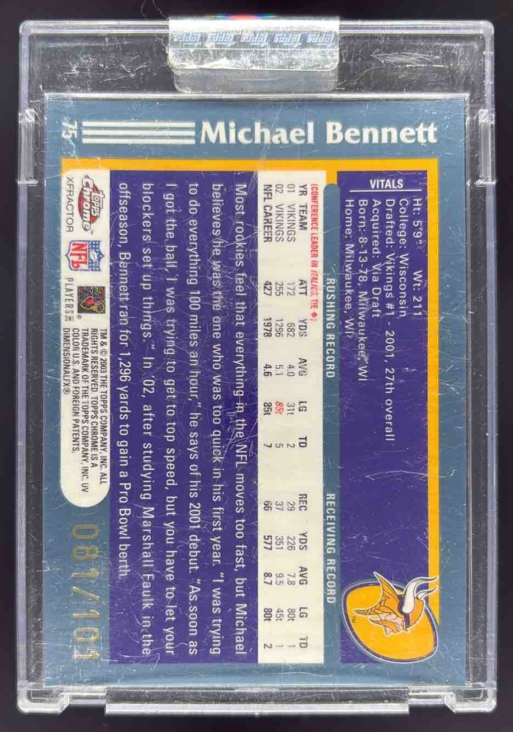 2003 Topps Chrome Gold Xfractors #75 Michael Bennett /101