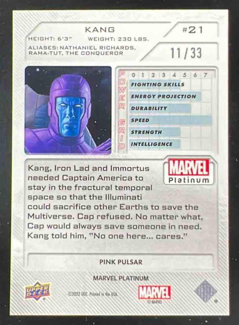 2023 Upper Deck Marvel Platinum Pink Pulsar #21 Kang /33