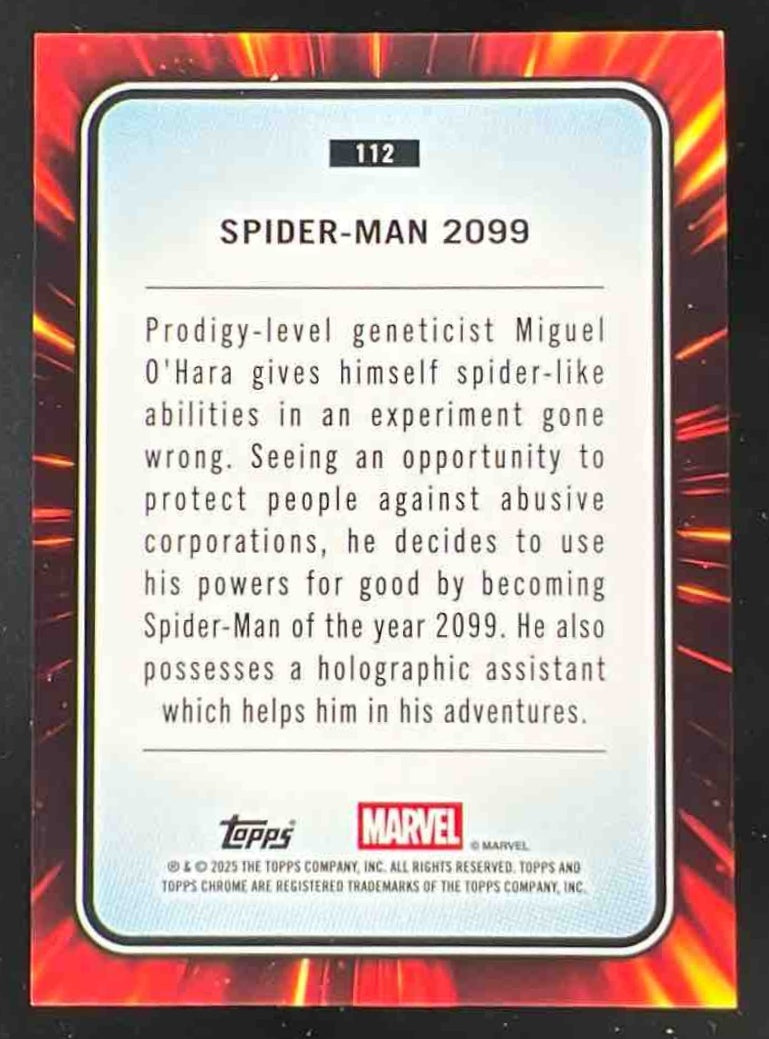 2025 Topps Chrome Marvel Iron Man Red & Gold Lazer #112 Spider-Man 2099 /100