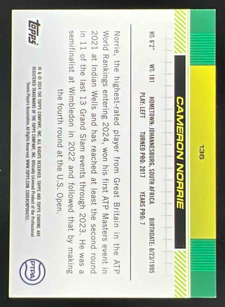 2024 Topps Chrome Purple Geometric may be White instead #136 Cameron Norrie /15
