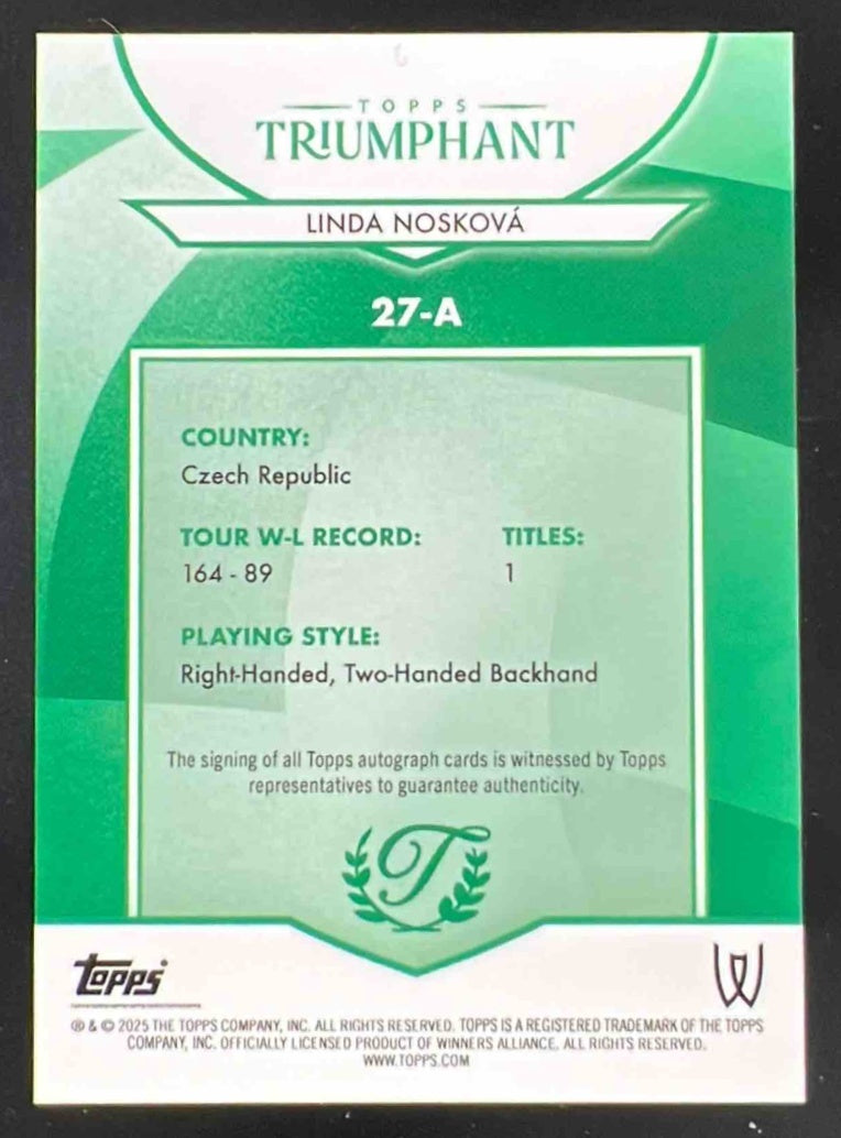 2025 Topps Triumphant Orange Foil #27-A Linda Noskova Autograph Auto /25