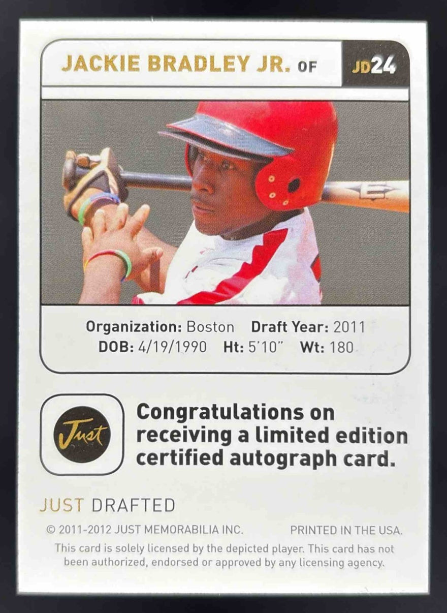 2011 Just Autograph Gold #JD24 Jackie Bradley Jr Auto /50