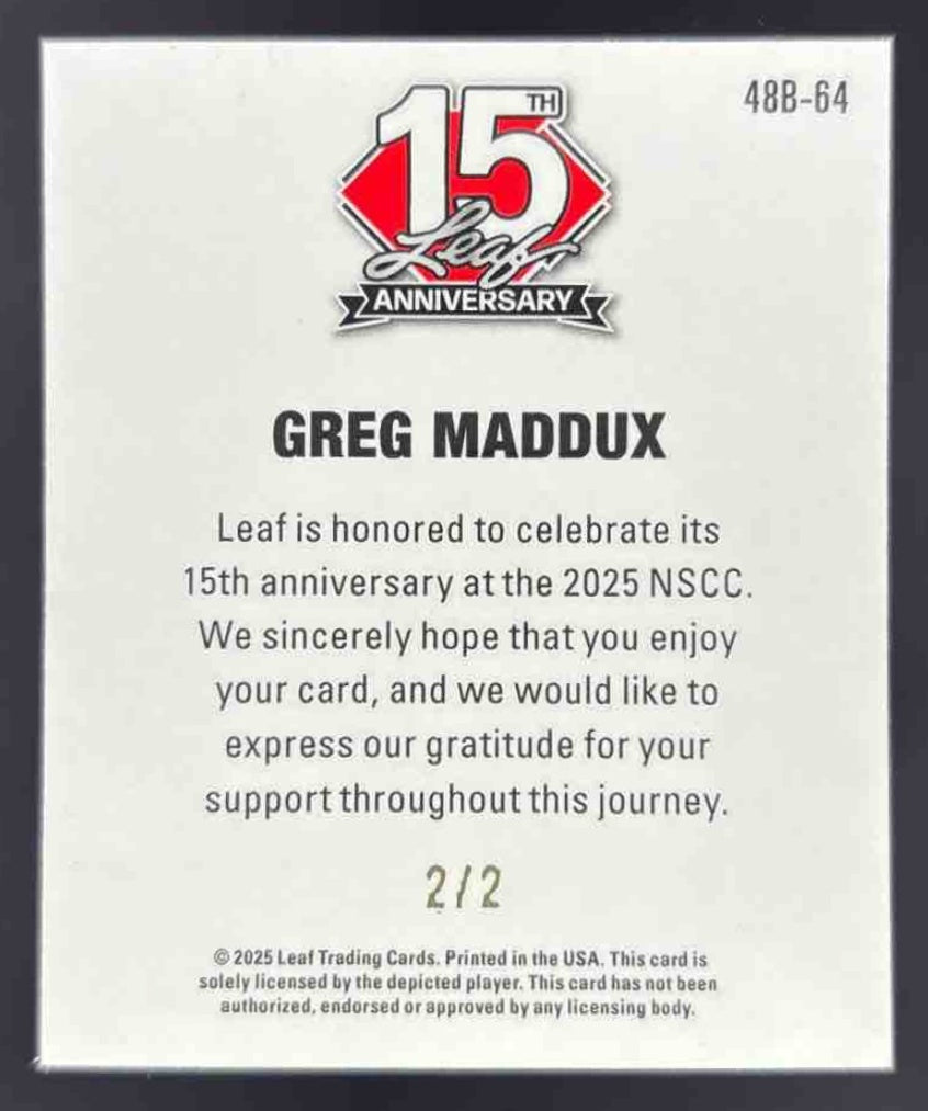 2025 Leaf 15th Anniversary NSCC 1948 Leaf Sparkles Black #48B-64 Greg Maddux /2