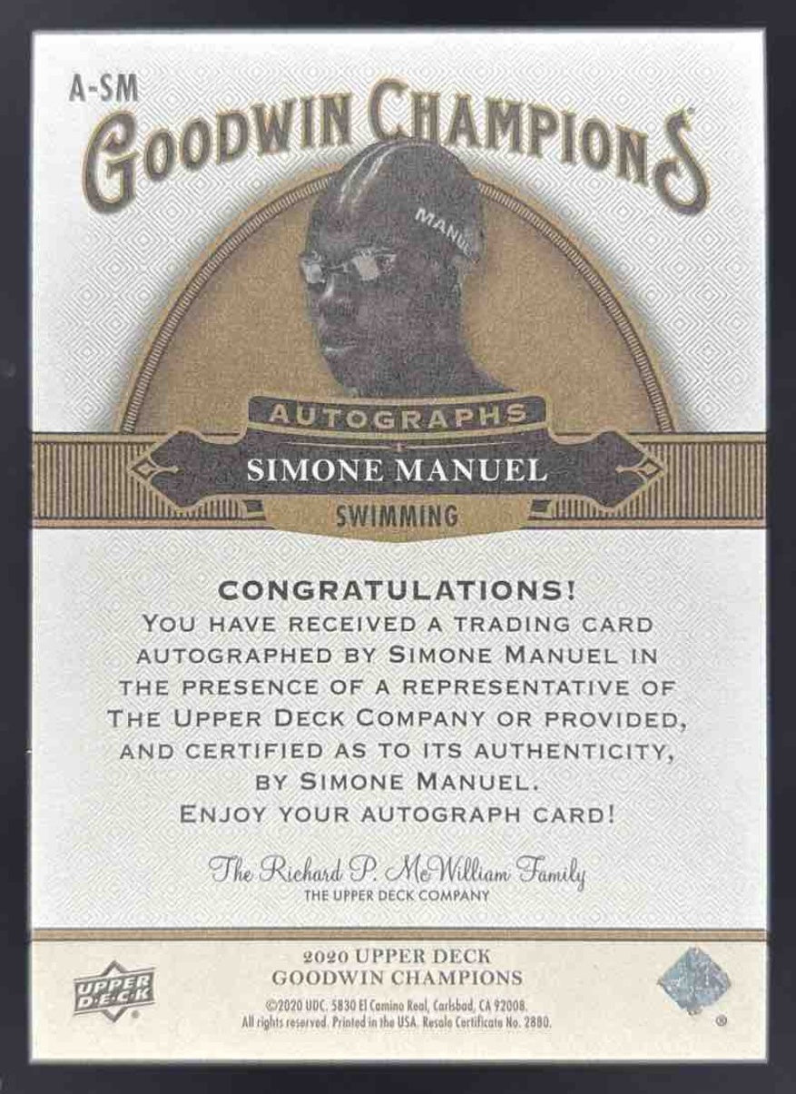 2020 Upper Deck Goodwin Champions Autographs #A-SM Simone Manuel Autograph Auto