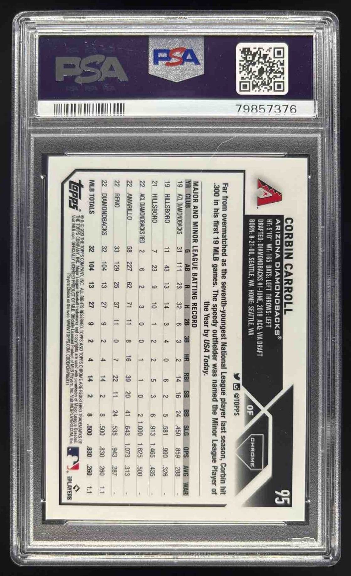 2023 Topps Chrome Purple Speckle Refractor #95 Corbin Carroll RC/299 PSA 9