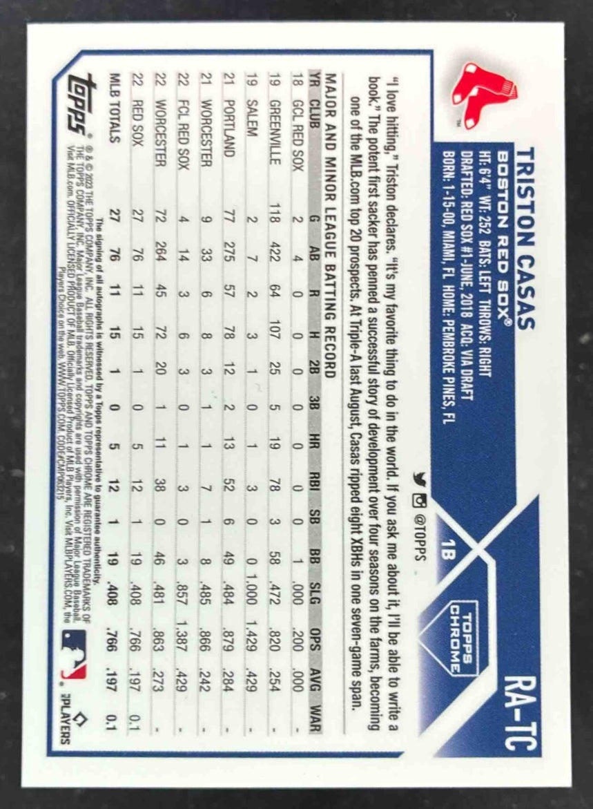 2023 Topps Chrome Rookie Purple Speckle Triston Casas Autograph RC Auto /299