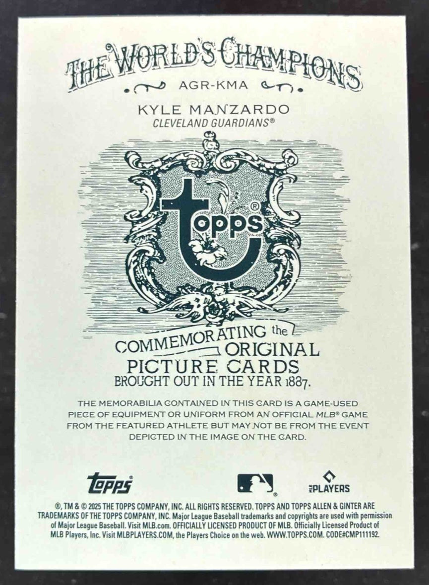 2025 Topps Allen & Ginter Full-Size Relics Topps Back #AGR-KMA Kyle Manzardo /5