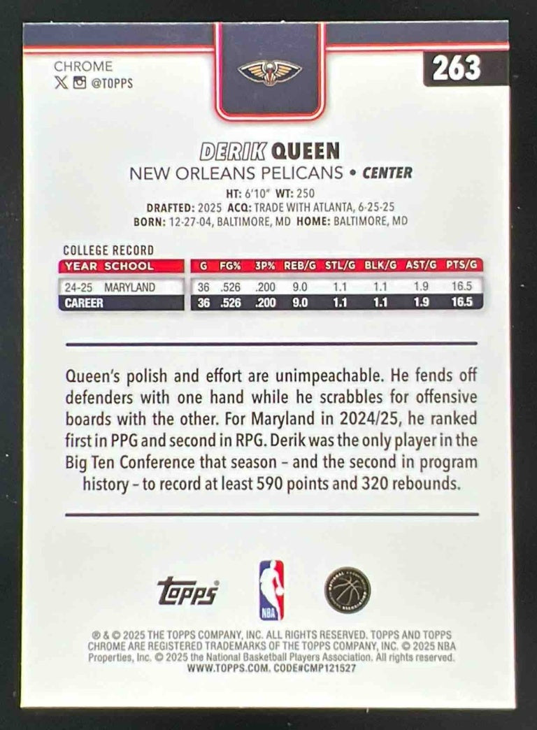 2025-26 Topps Chrome Prism Refractor #263 Derik Queen RC