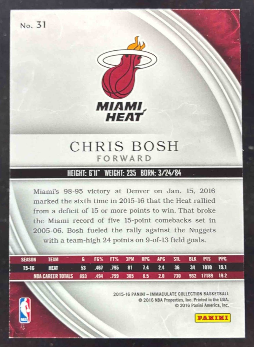 2015-16 Panini Immaculate Collection Bronze #31 Chris Bosh /49