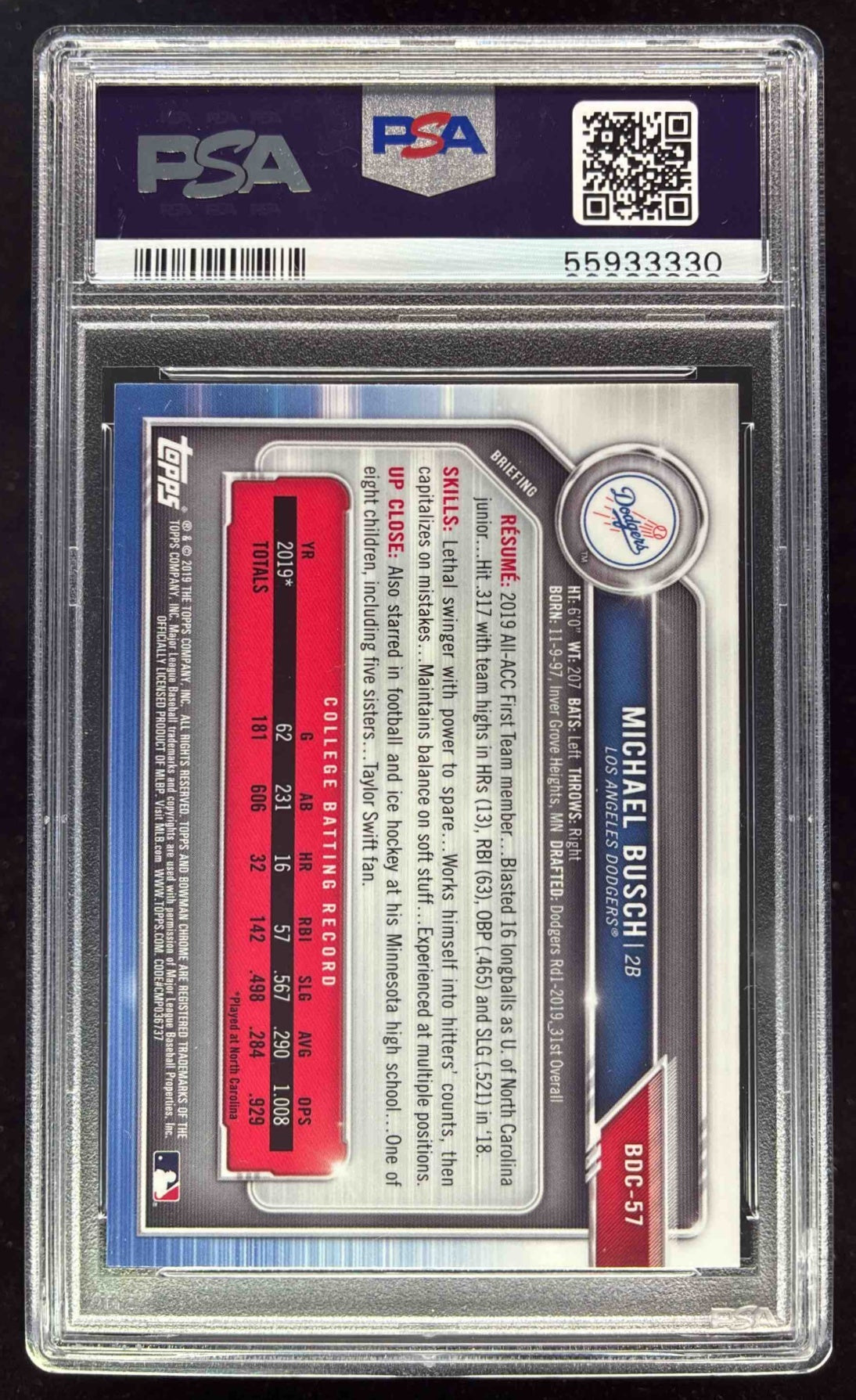 2019 Bowman Draft Chrome #BDC-57 Michael Busch RC PSA 9