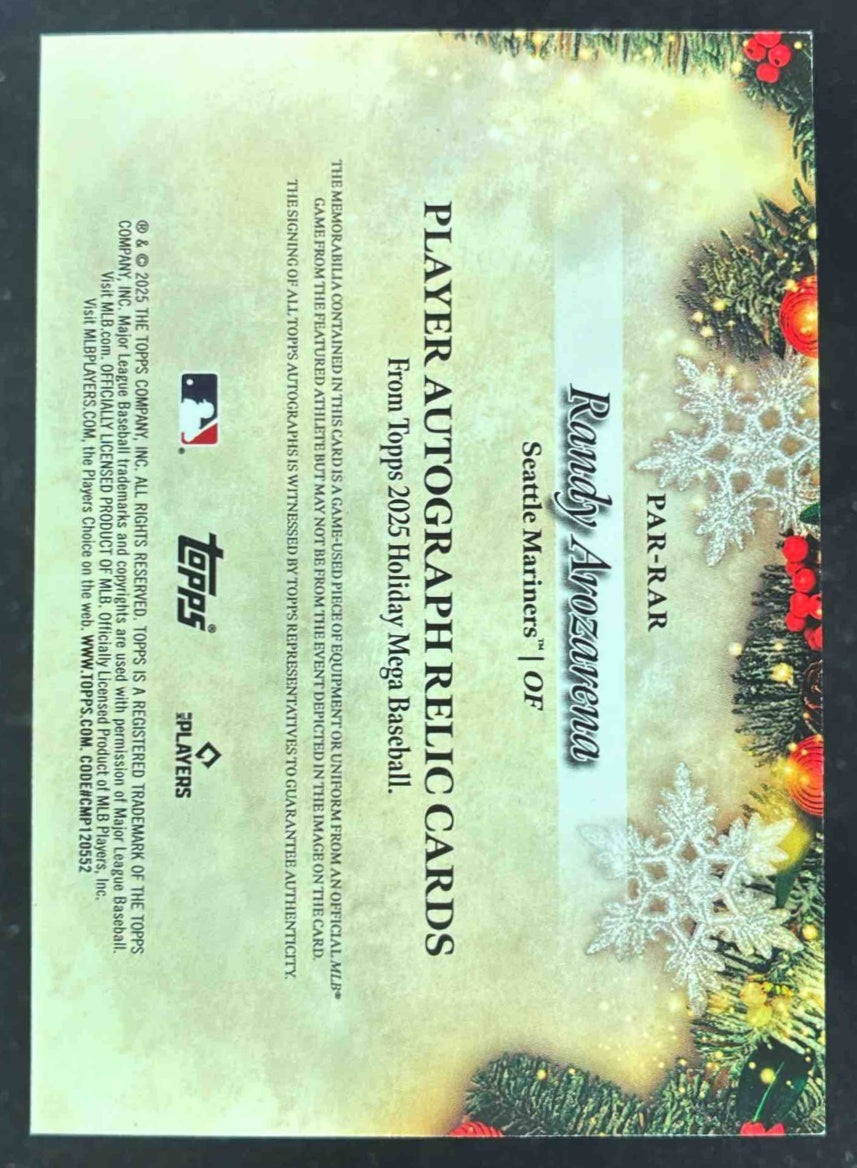 2025 Topps Holiday Player Autograph Relics #PAR-RAR Randy Arozarena Auto /25