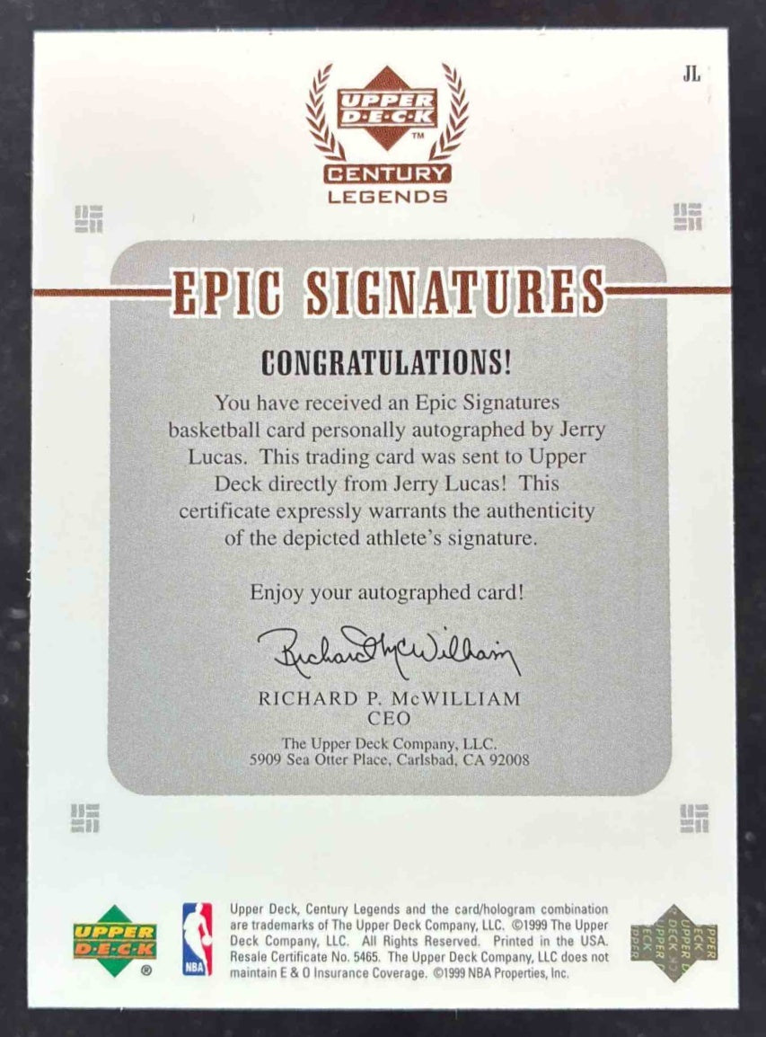 1999-00 Upper Deck Legends Legendary Signatures #JL Jerry Lucas Auto