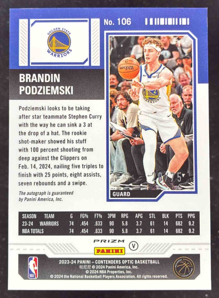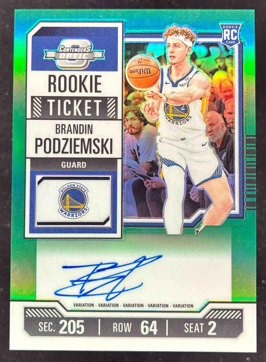 2023 Contenders Optic Rookie Ticket Green #106b Brandin Podziemski RC Auto /75