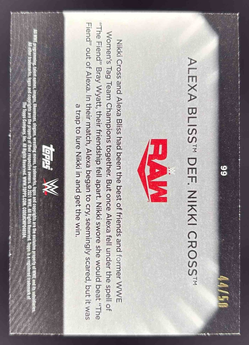 2021 Topps WWE Women's Division Green #99 Alexa Bliss def. Nikki Cross /50