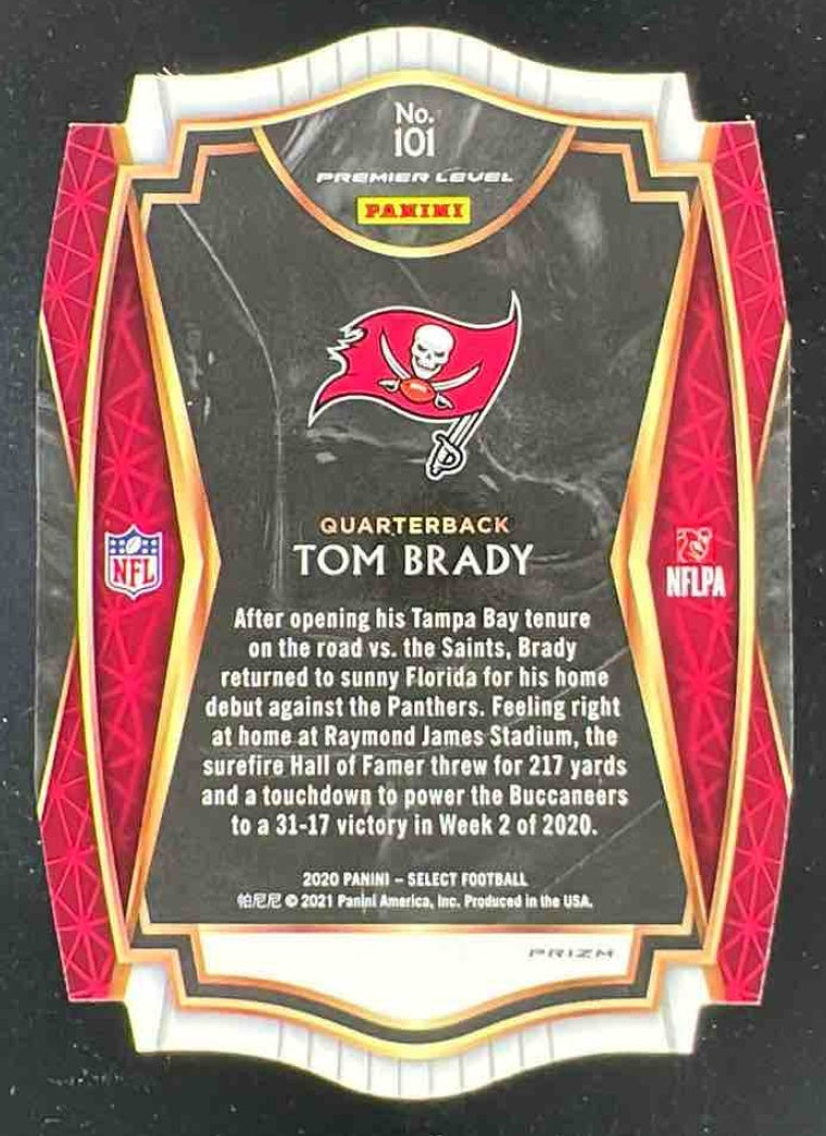 2020 Panini Select Neon Green Prizm Die Cut #101 Tom Brady Premier Level