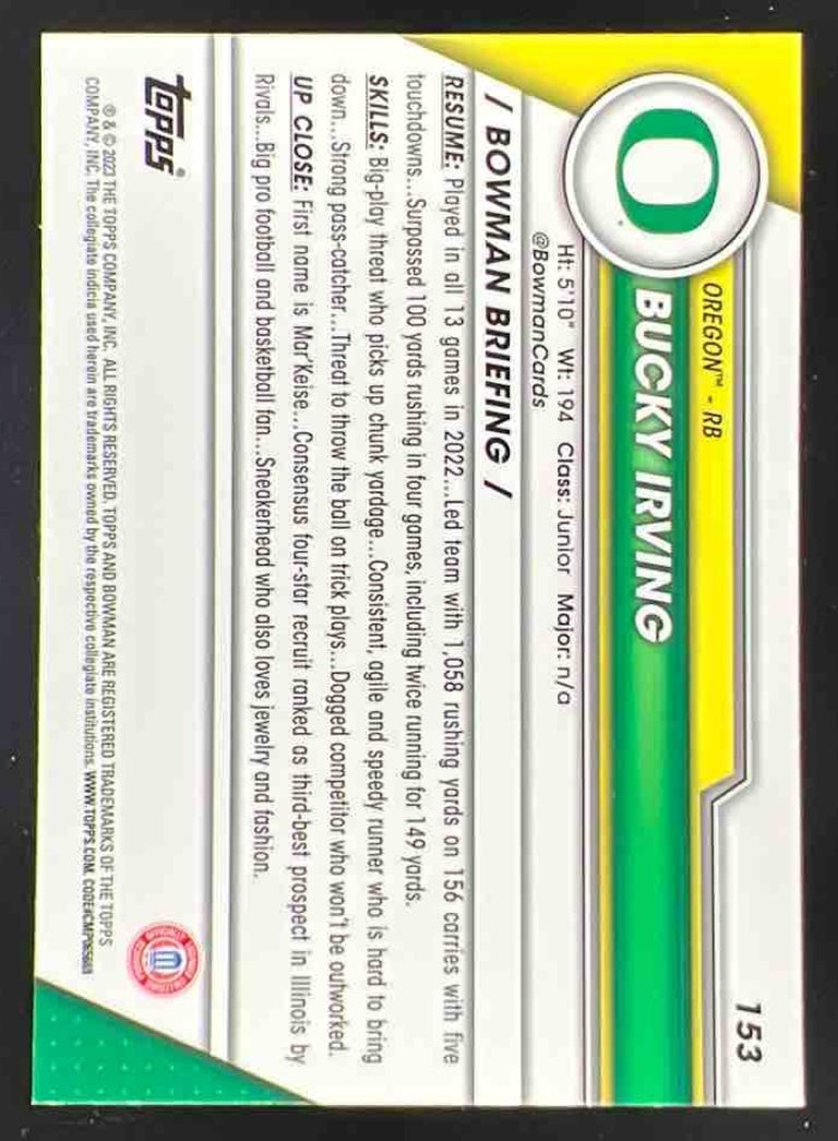 2023 Bowman Chrome University Stealth Refractors #153 Bucky Irving