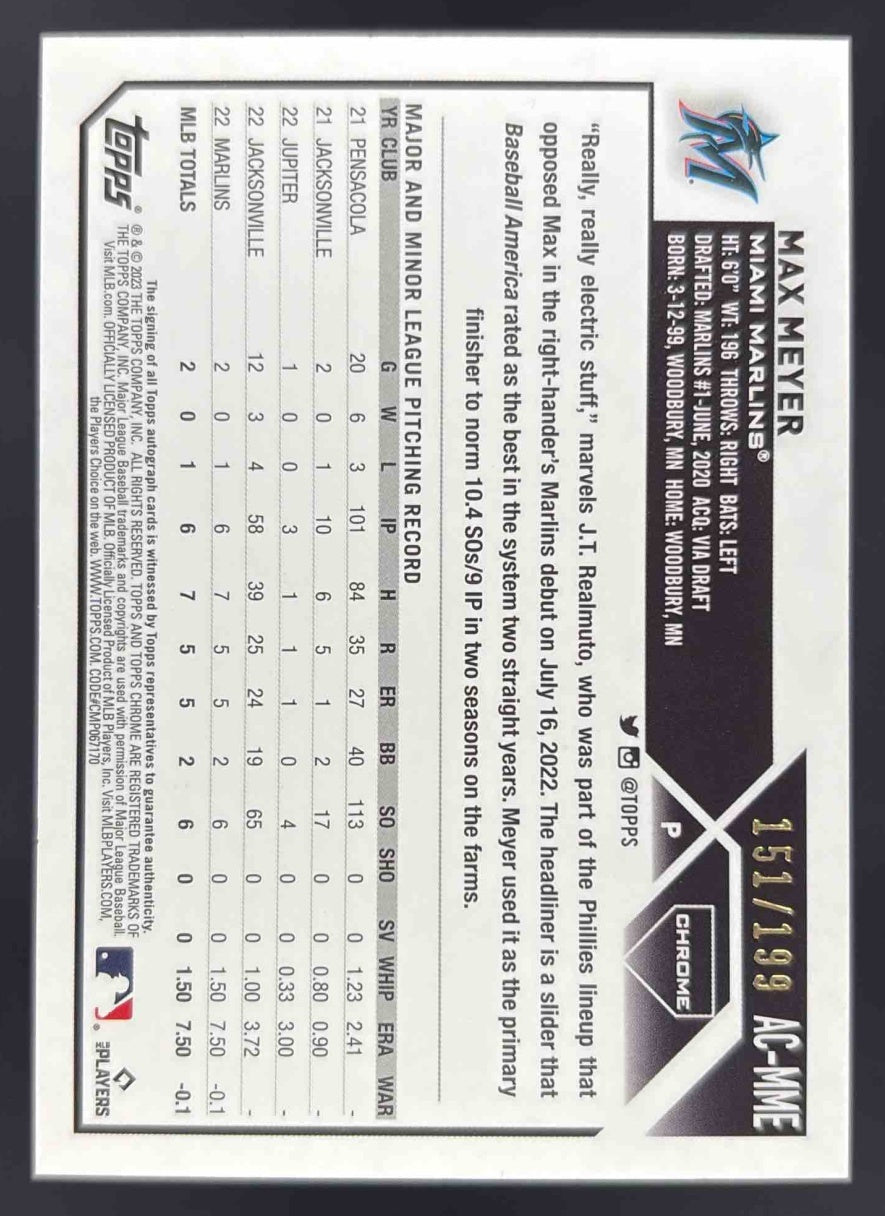 2023 Topps Chrome Aqua Wave Refractor #AC-MME Max Meyer Autograph RC Auto /199