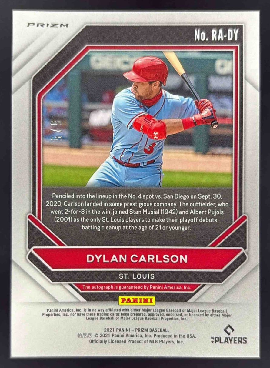 2021 Panini Prizm Rookie White Donut Circles #RA-DY Dylan Carlson RC Auto /5