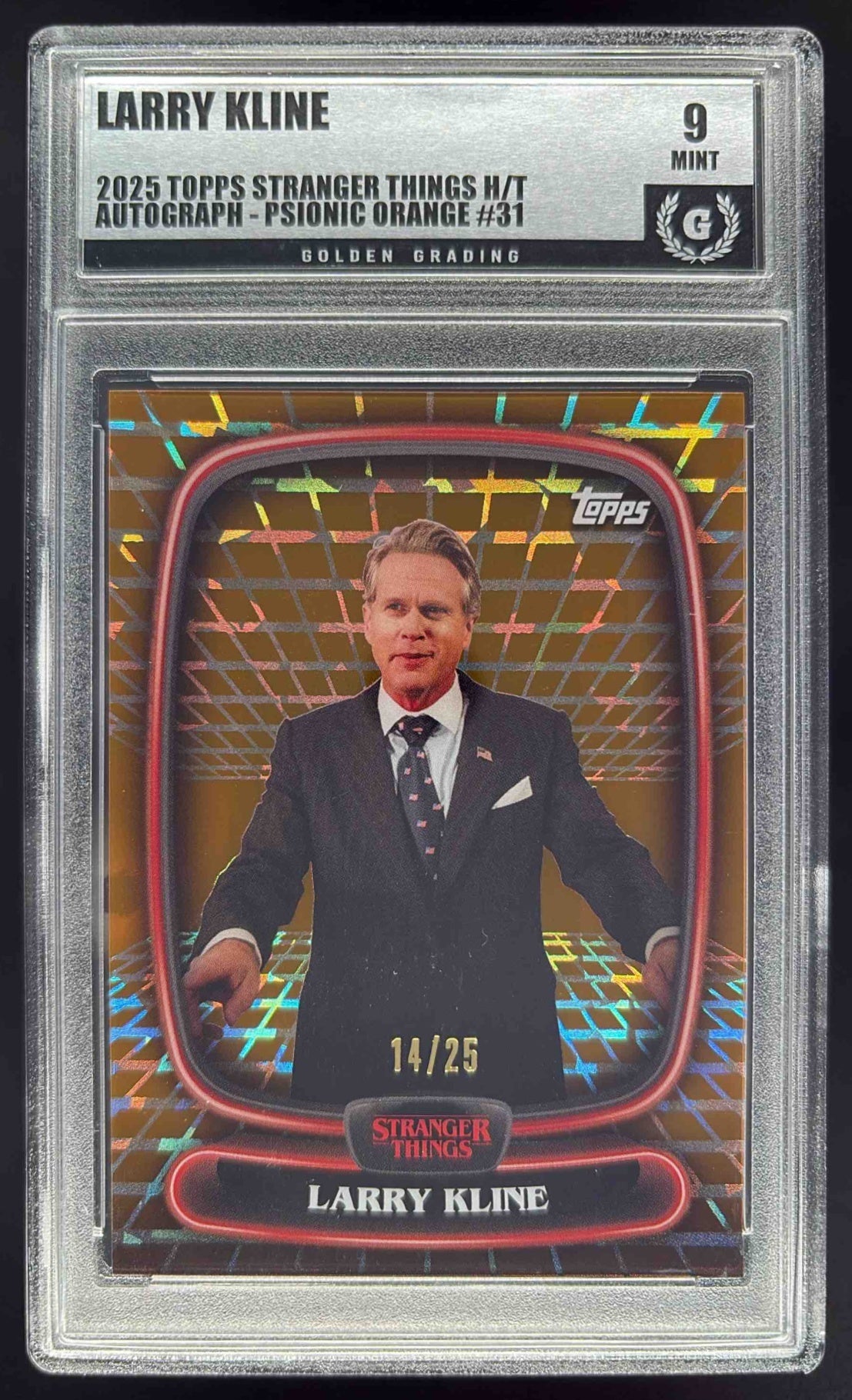 2025 Topps High Tek Stranger Things Lab Psionic Orange Larry Kline /25 Golden 9