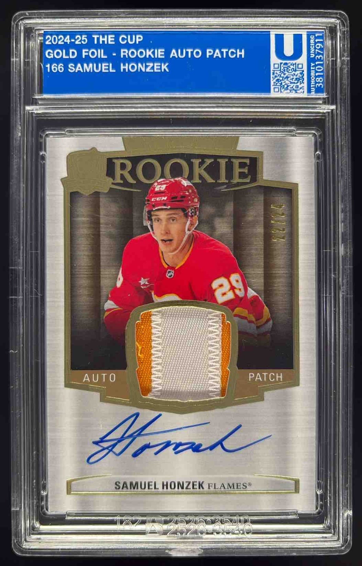 2024-25 Upper Deck The Cup Gold Foil #166 Samuel Honzek Rookie Patch Auto RC /24