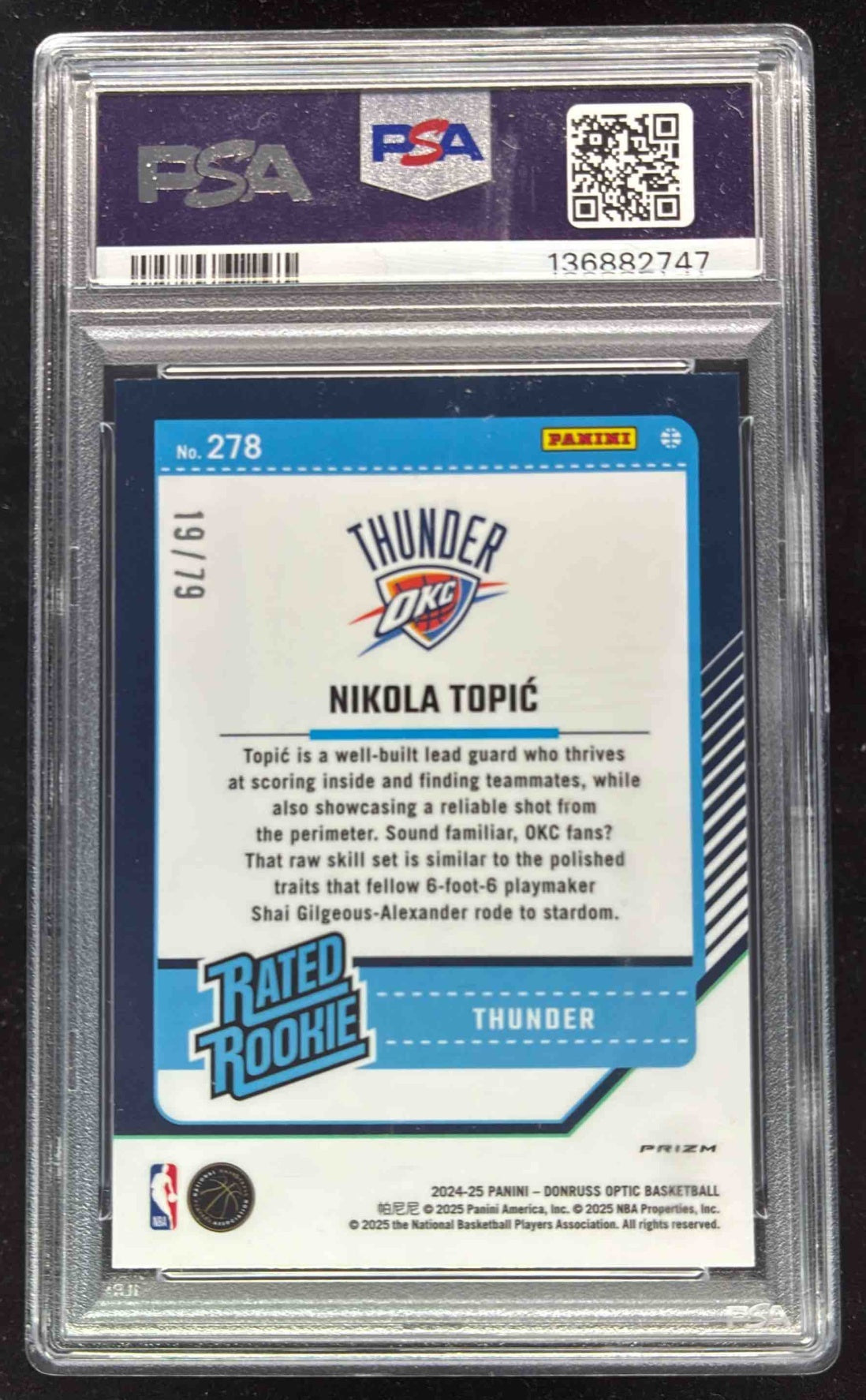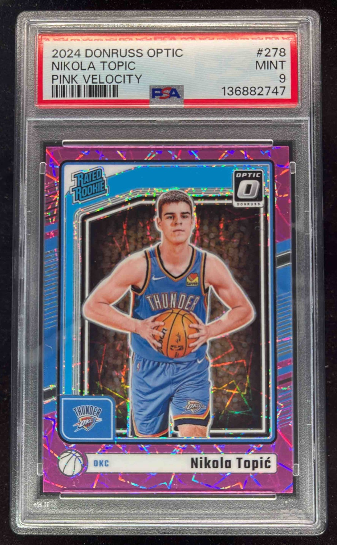 2024 Donruss Optic Pink Velocity #278 Nikola Topic RC Rated Rookie /79 PSA 9