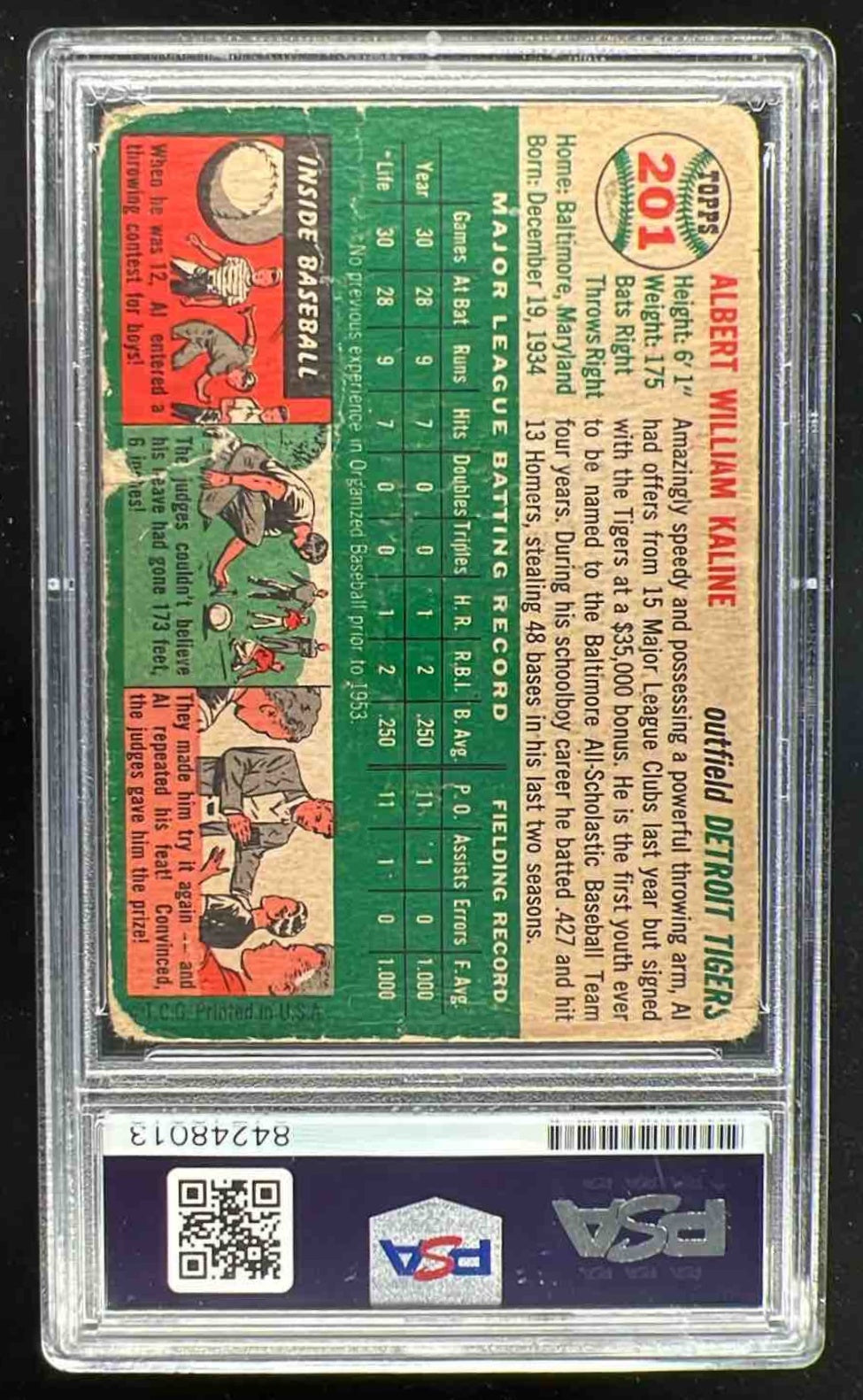 1954 Topps #201 Al Kaline RC Rookie Autograph Auto PSA Authentic