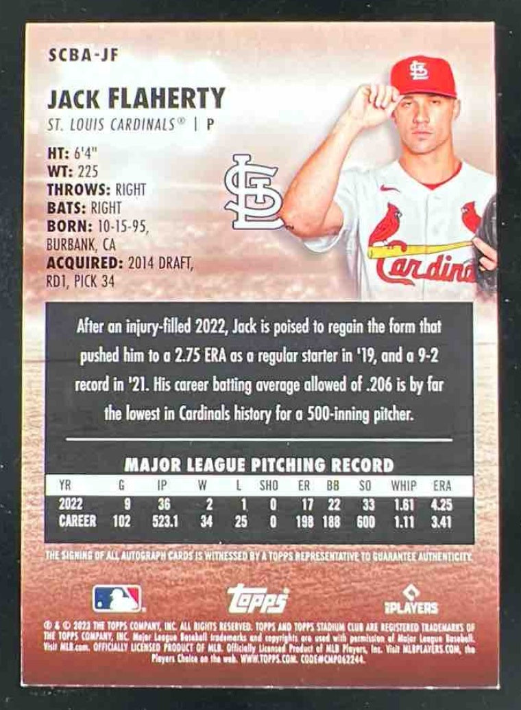 2023 Topps Stadium Club Autographs #SCBA-JF Jack Flaherty Auto